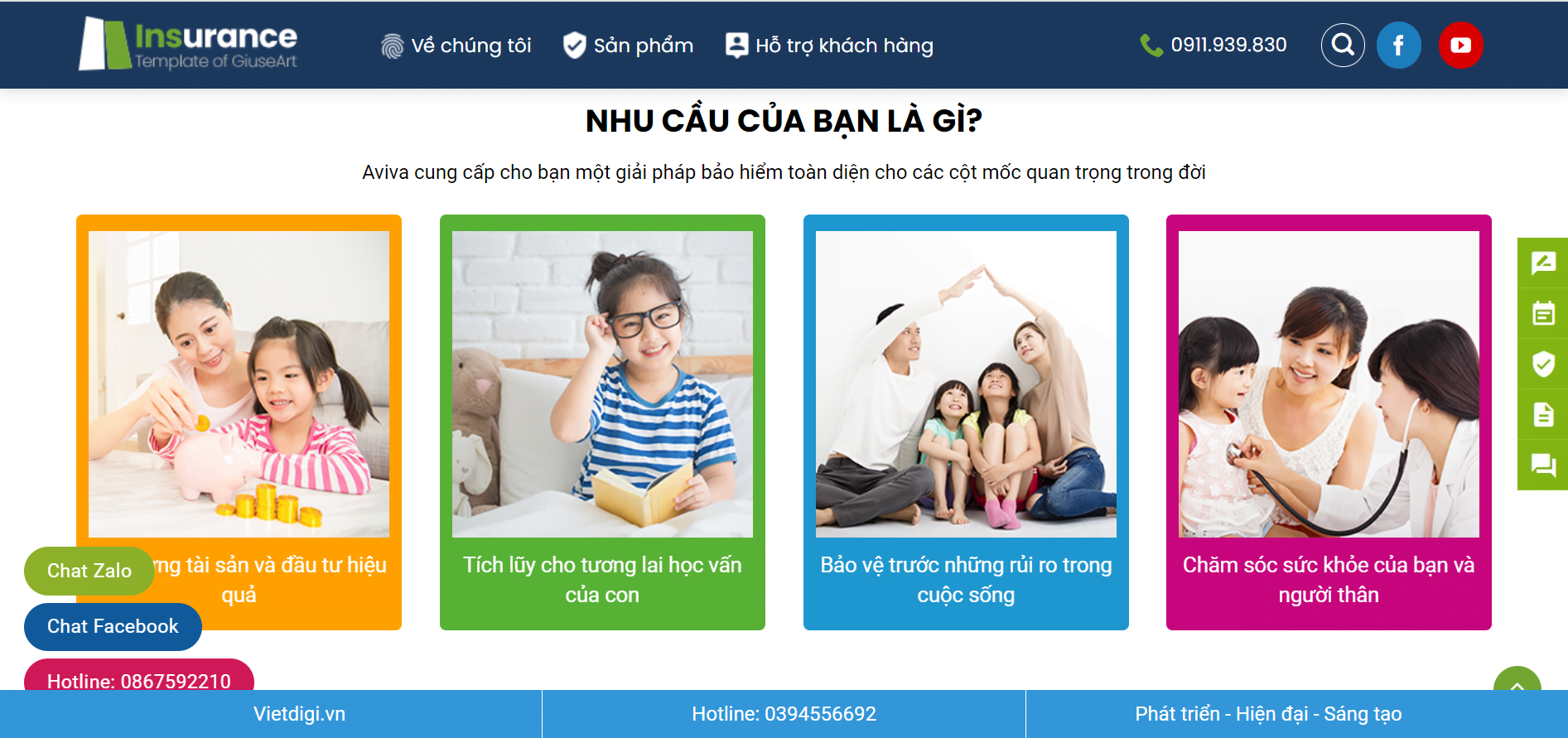 Nếu bạn đang tìm kiếm một dịch vụ thiết kế website công ty bảo hiểm chuyên nghiệp với giao diện hiện đại, nắm bắt xu hướng thì hãy liên hệ với Việt Digital của chúng tôi. Hy vọng hỗ trợ doanh nghiệp của bạn trên thị trường số và phát triển toàn cầu.
